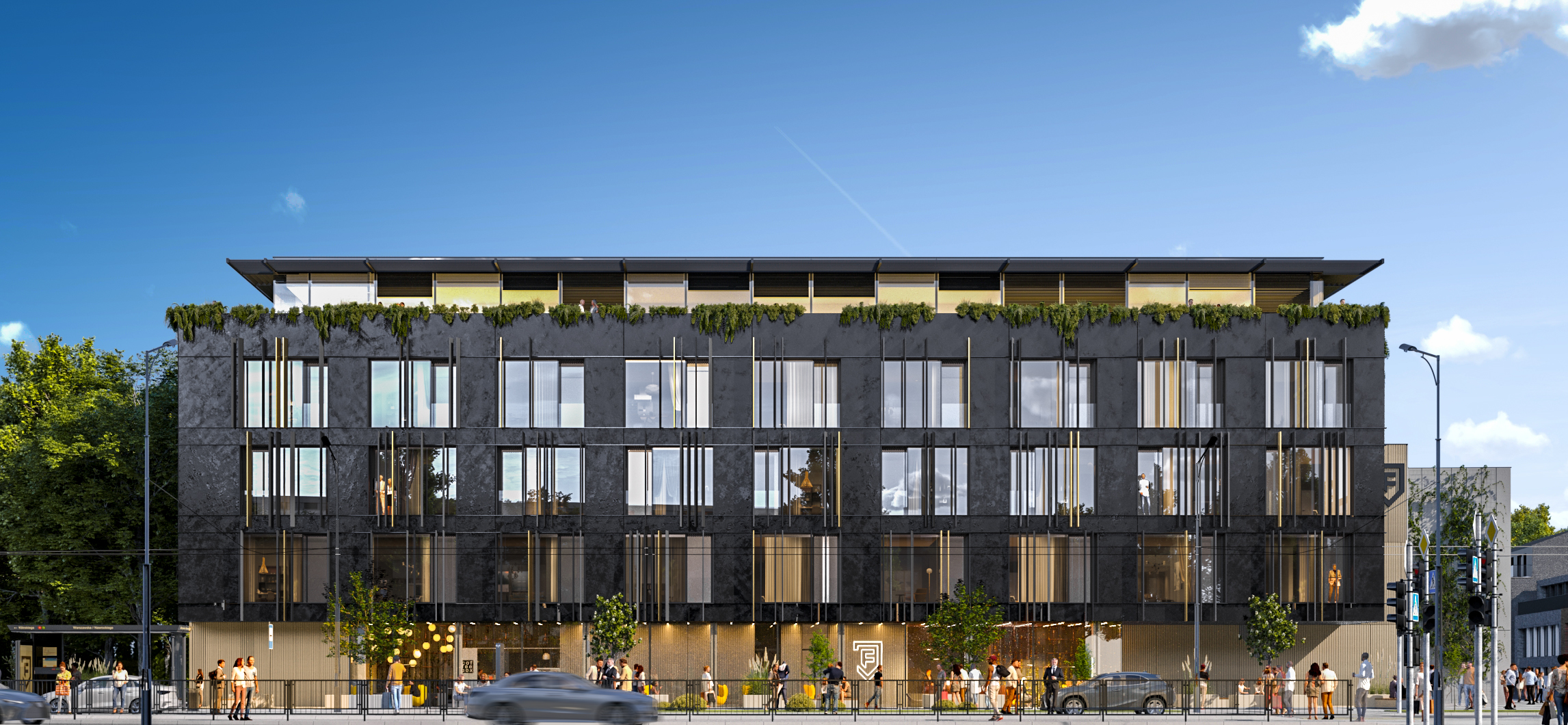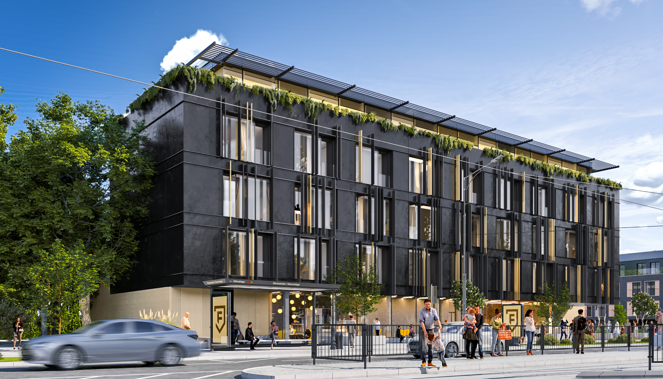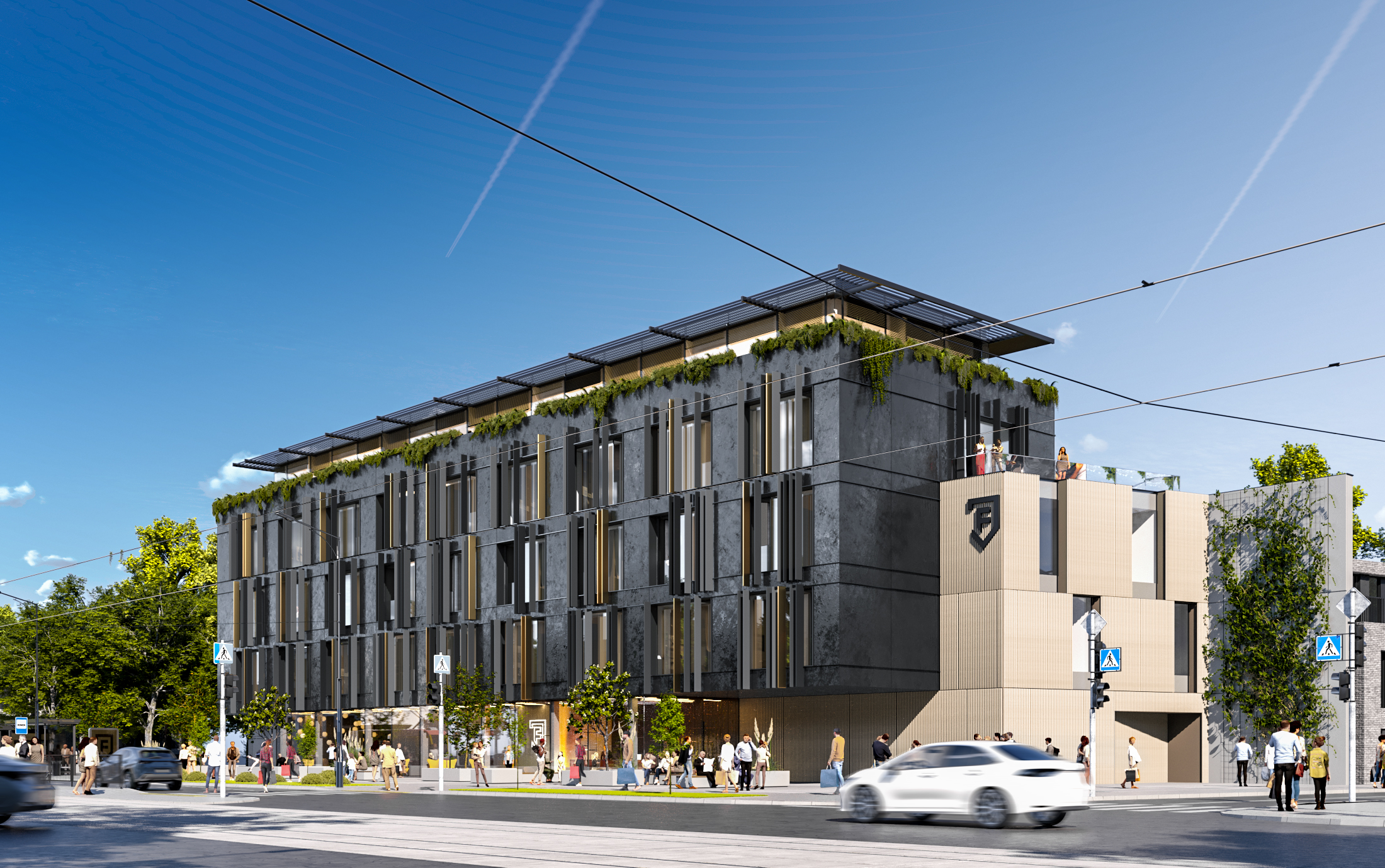 Biurowiec składa się z białej bryły, która dopełnia pierzeję zabudowy ulicy Warszawskiej w Pabianicach. Jego fasada posiada rytmicznie ułożone okna podkreślone grafitowymi wnękami z paneli hpl. Ostatnie piętro składa się z tarasu widokowego dopełnionego zielenią.