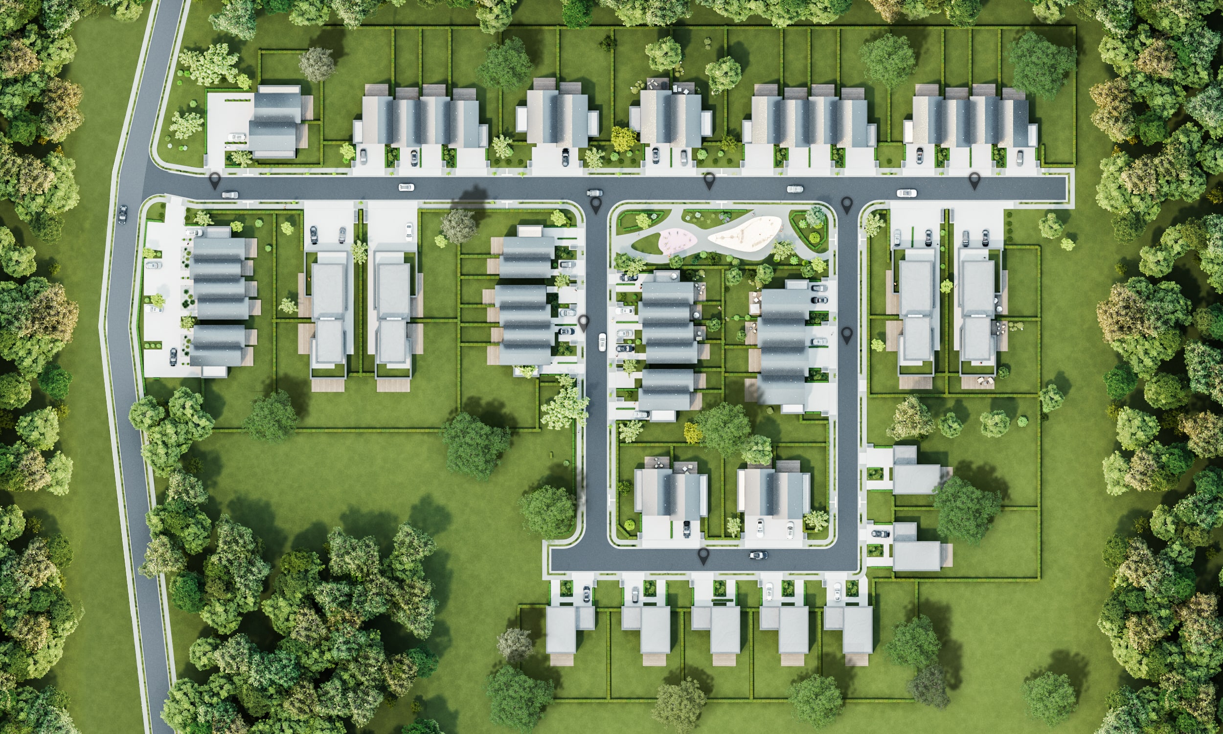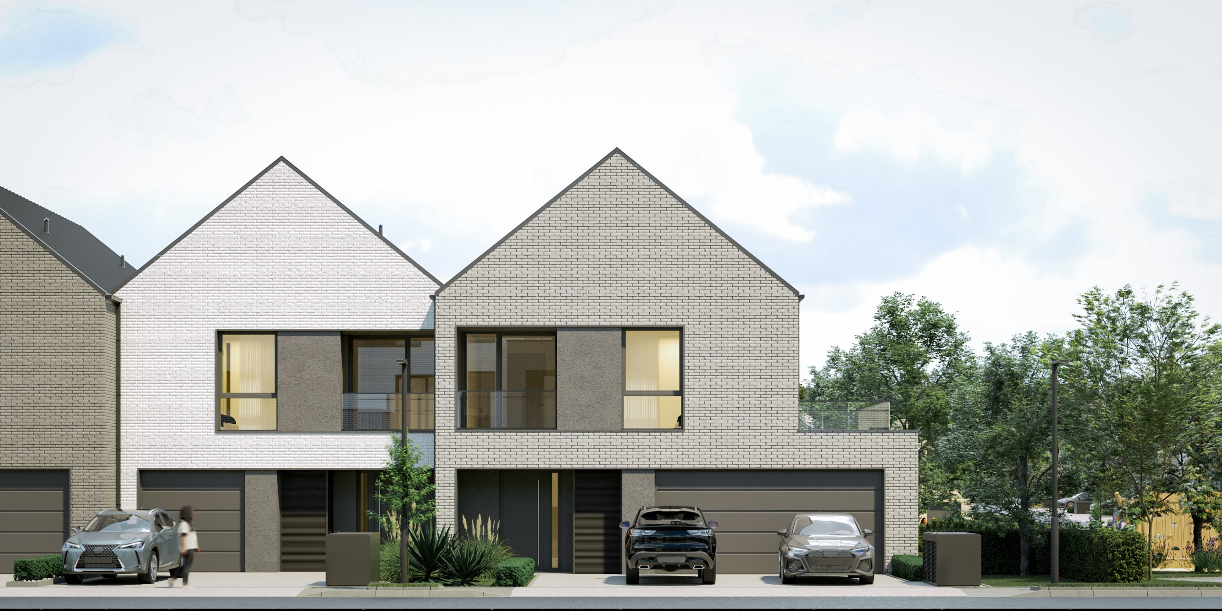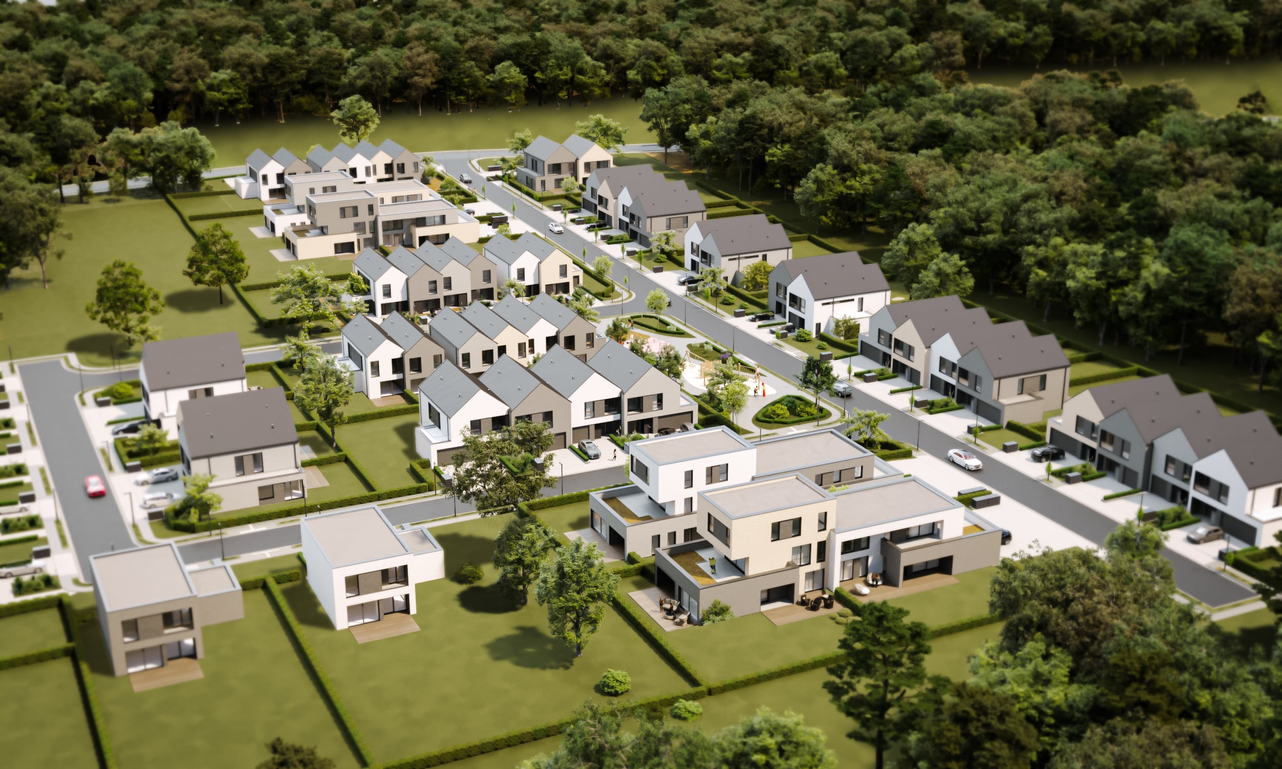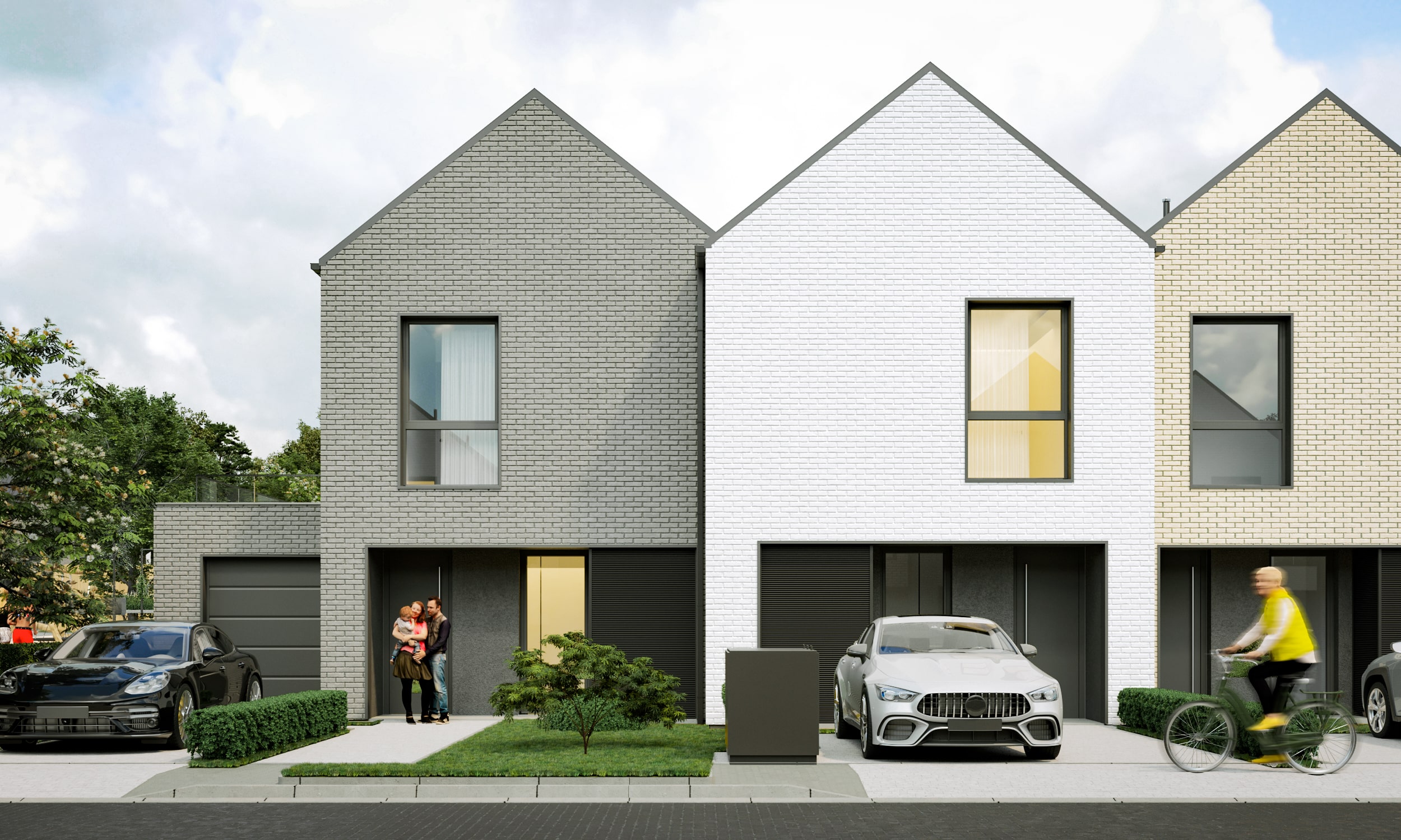 Projekt składa się z pięciu typów domów dwukondygnacyjnych, zakomponowanych na działce w taki sposób by tworzyć zgraną jednostkę osiedlową. To co wyróżnia to osiedle na tle innych, to uskokowe przesunięcie elewacji budynków sąsiadujących ze sobą.